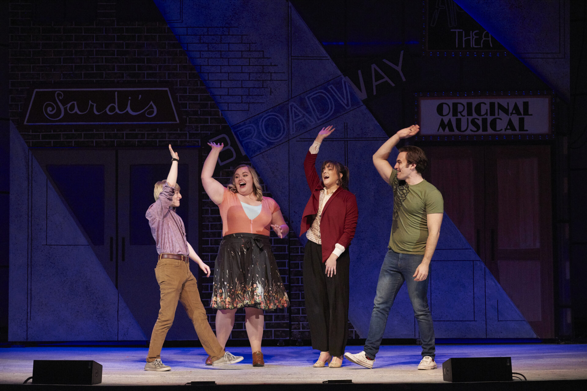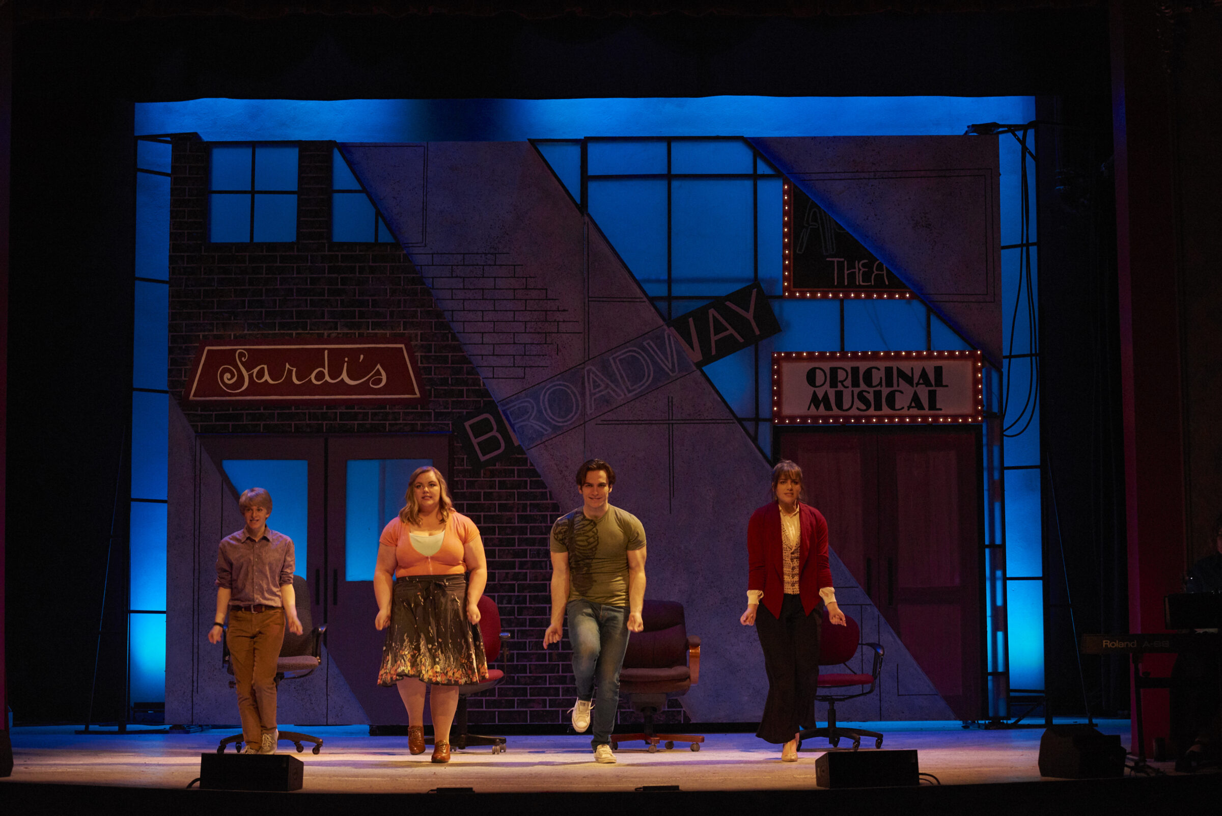 This show tells the story of a group of friends trying to write a Broadway musical. The design for the show included a practical marquee sign with chase lights circling it and actual stage lights on a rolling stage, used at the end of the show. The rest of the lights were done to emphasize the different parts of the show, with conventional lighting done for the scenes while LEDs were heavily used for the musical numbers.